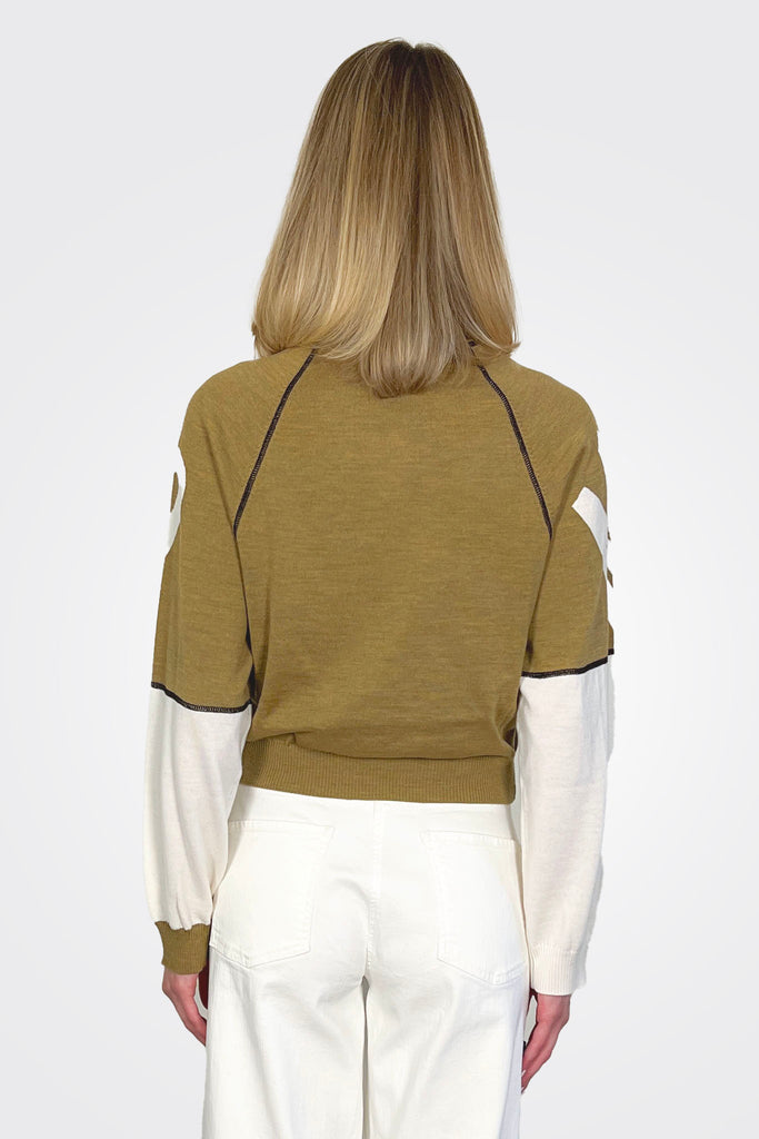 Long Sleeve Name Sweater - Tan White