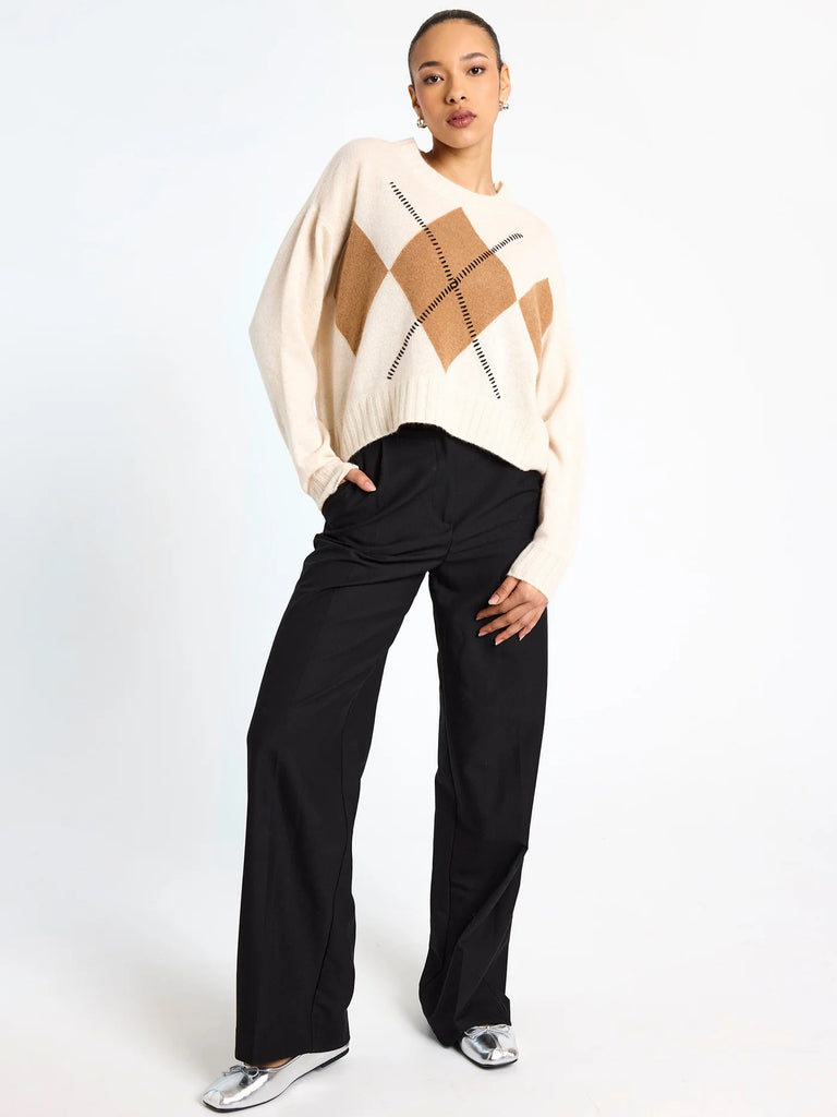Relaxed Argyle Cashmere Jumper - Antique White