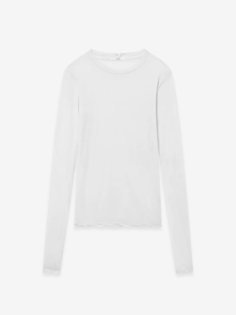 Meet the featherweight layer you’ll wear on repeat. The Ally Long Sleeve is cut from tissue cotton, airy and semi-sheer with a softness that only gets better with time. Designed in a slim, body-skimming fit, it slips cleanly under tailoring, tucks sharp into denim, and holds its own with quiet confidence.Extra-long sleeves and a precise crew neckline give it a modern, elongated shape, while the sheer finish delivers just enough attitude. Minimal, versatile, and indispensable, Ally is your year-round second skin, built for layering and made to live in.