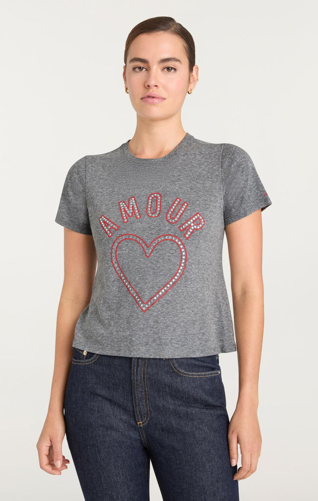 Make a statement with this Crystal Amour Heart Shrunken Tee, complete with a bold studded heart on the front. The relaxed fit delivers comfort while metallic studs add an edgy contrast that elevates your everyday look. Versatile enough to layer or wear alone.