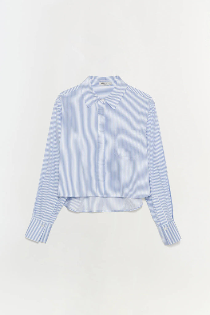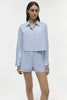 Renata Long Sleeve Cropped Shirt - Blue Hydrangea Stripe