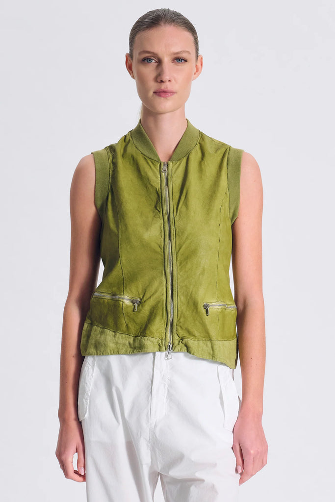 Slim Fit Leather Vest - Olive