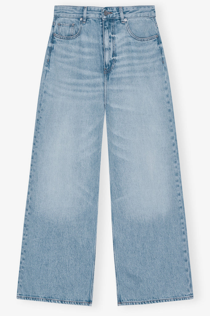 These jeans feature belt loops, a button and zip closure, five pockets and a wide-leg silhouette.