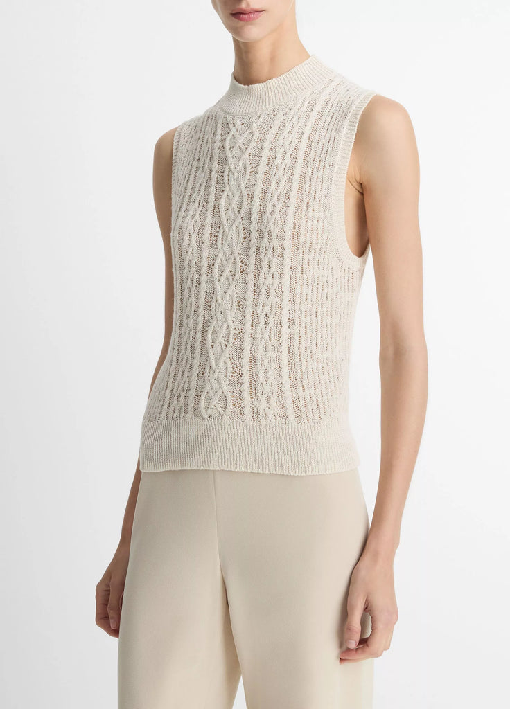 Cable Cotton-Blend Double-Layer Shell - Off White Gold Cliff