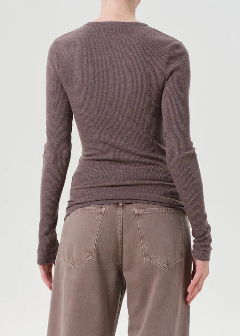 The Delphi Slim Tee is a fitted long sleeve crewneck with a flattering ribbed texture. Crafted from midweight fabric, it offers a sleek, streamlined fit ideal for layering or wearing solo.